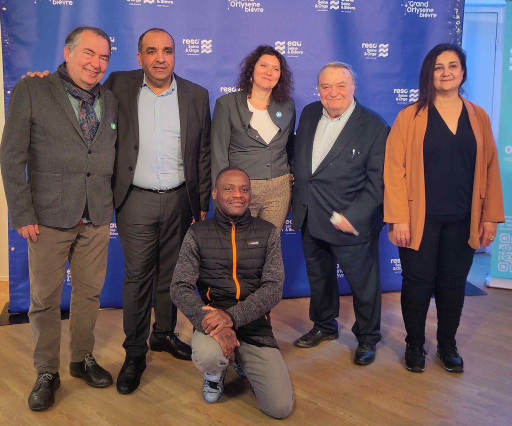 Aux vœux des régies de l’eau du Grand Orly Seine Bièvre, de g à d, Jean-Claude Oliva, Fatah Aggoune, Pdt de la régie Eau, Seine et Bièvre, Carel Assogba, élu de Villejuif, Vanessa Charlotte, Coord’eau IDF, Jacky Bortoli, Grand Paris Sud, Anissa Tibah, Coord’eau IDF.